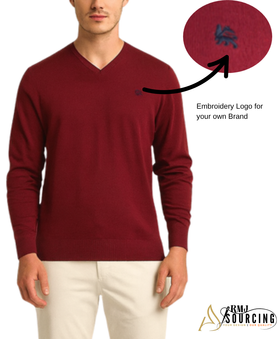 Men’s V-Neck Sweater – Premium Cotton Cashmere Blend